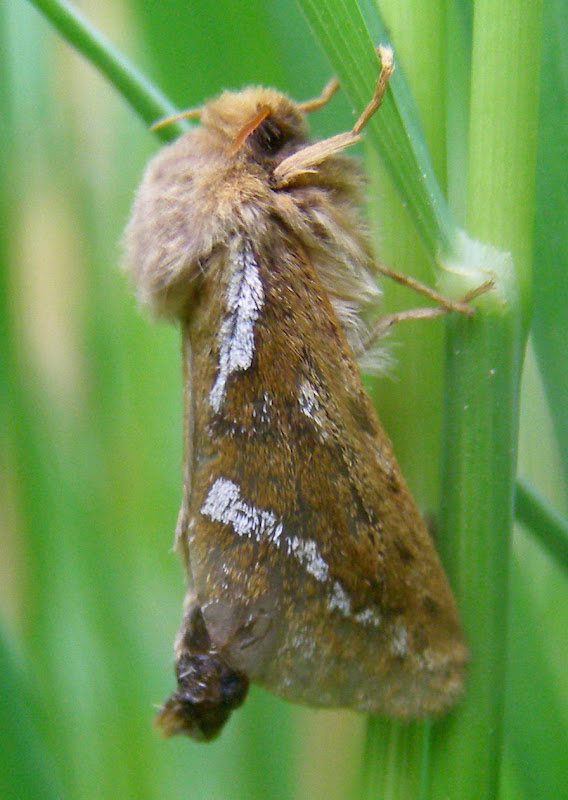 From early summer: a common swift moth, Korscheltellus lupulina = Hepialus lupulinus (Lepidoptera: Hepialidae).
